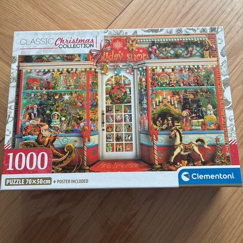 Falcon 4 puslespil med 1000 brikker hver, i alt 4 puslespil med juletema. Motiverne inkluderer familietid ved jul, julemarked og vinterlandskab. Puslespillene er lavet af pap og henvender sig til voksne og børn med interesse for puslespil.