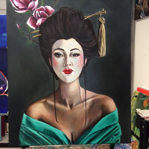 Materialer: Spraymaling, Oliepinde, poscatusser, akrylmaling, malerpasta, sand, bark.