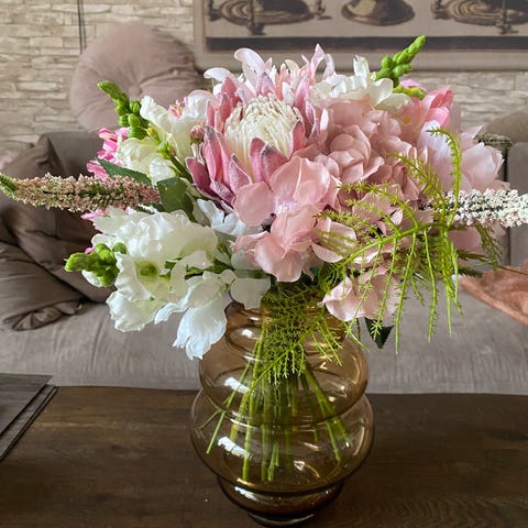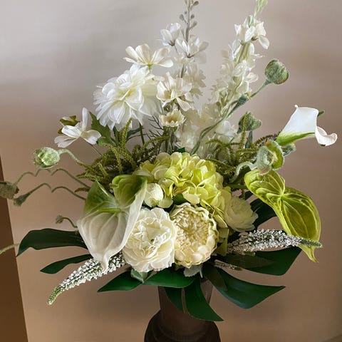 Meget naturtro kunstige dahlia blomster, bundet i buket