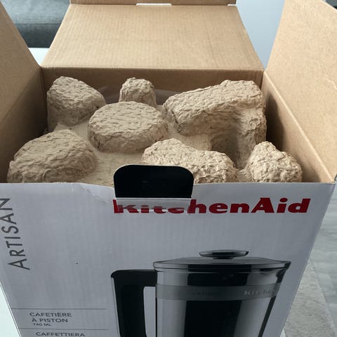 KitchenAids Artisan stempelkande i rustfrit stål. Stempelkanden har integreret vægt og timer, der gør det muligt at veje malet kaffe og vand hver for sig i kanden, så du får en fyldig kaffesmag med et perfekt forhold mellem kaffe, vand og bryggetid.