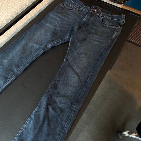 Tommy Hilfiger Ryan Slim Straight jeans i blå denim. Størrelse W30 og M. Designet med en lige pasform og klassisk fem-lomme-stil. Ny pris 674kr