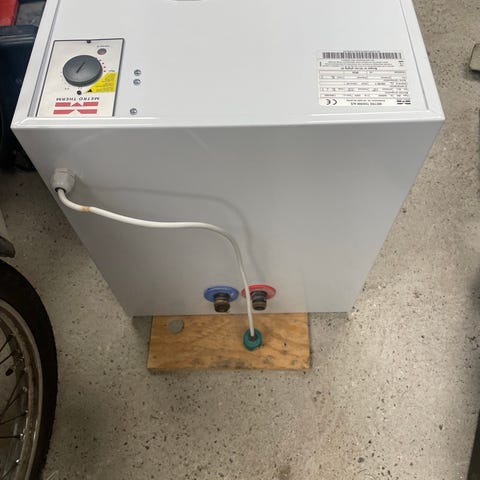 METRO Model 30 Elvandvarmer med kapacitet på 26 liter. En elektrisk vandvarmer designet til opvarmning af vand i husholdninger. Enheden er udstyret med tilslutningsrør og termostat til regulering af vandtemperaturen. Produkt dato 22-10-2023