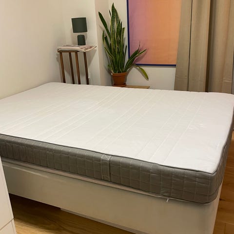 Sengen består af en Wellpur memory foam-madras, som giver god støtte og komfort, samt en solid IKEA-sengeramme.