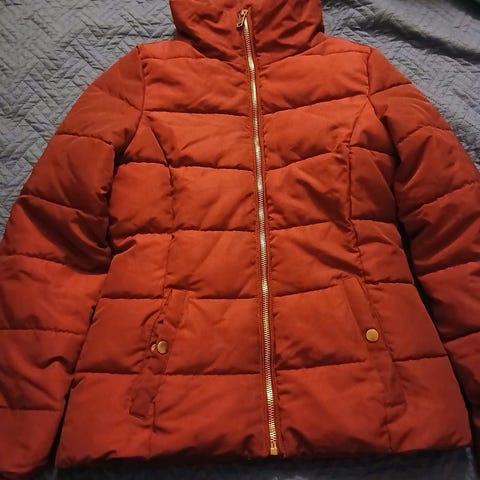 Lækker og cool dunjakke fra InWear i str. S med hætte, som kan snøres ind, så man kan holde kulden ude.