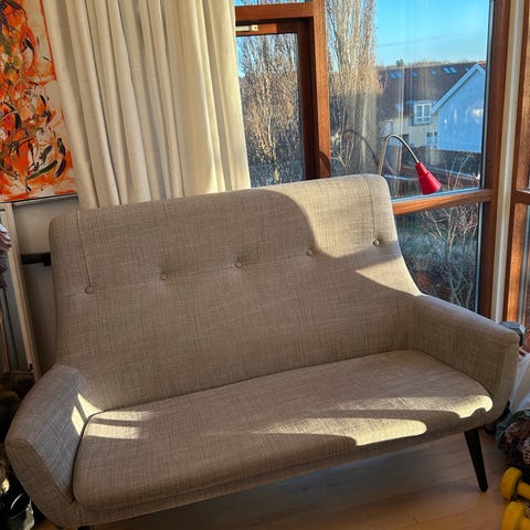 Rigtig fin sofa der sælges billigt, da vi skal flytte. Sofaen er i fin stand, men har tendens til at få lidt løse ben, men som nemt skrues på igen. Betrækkes kan tages af og vaskes