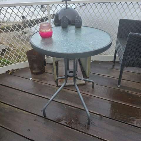 Bord med fire stole. Trænger til en kærlig hånd.