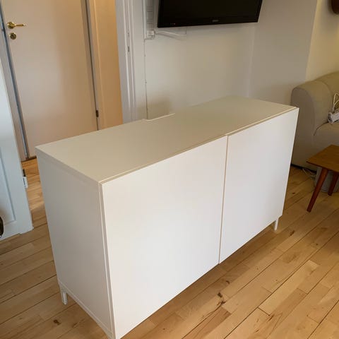 Ikea BESTÅ TV-møbel sælges. Kommoden har to låger samt to skuffer. Fremstår i pæn stand kun med et enkelt synligt mærke på toppladen (kan eventuelt skiftes).