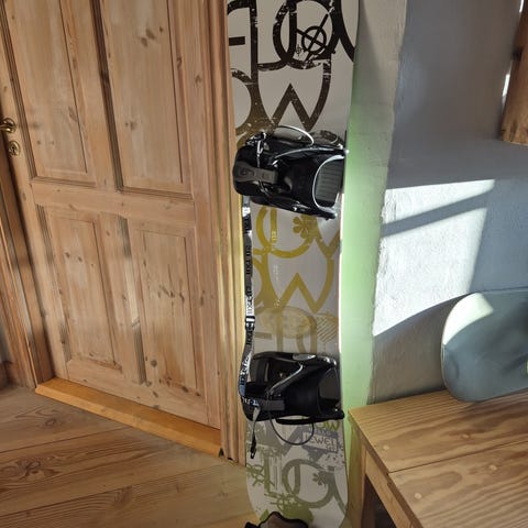 Snowboard med nogle ridser. Men fint til at prøve om snowboard er noget for dig. Gode flow bindinger.