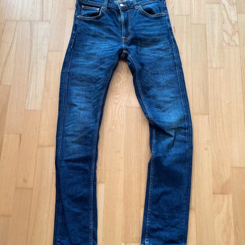 Nudie Jeans Denimjeans i blå farve, størrelse W29 og M. Fremstillet af bomuld. Designet til mænd. Model Tight Terry. Giv et bud