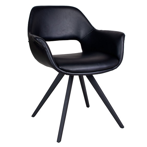 Meget smuk og ekstravagant stol med blødt sort sydney læder (semianilin) i hvidpigmenteret mat lak.