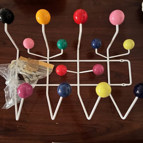 Velholdt Hang it knagerække i Tivoli farver. Kun en enkelt ridse som vist på billede. De originale hvide skruer følger med.