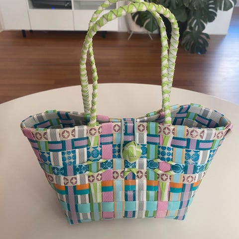 Lille taske, som både kan være maske og skuldertaske. Kan også afhentes i Lyngby eller i Helsingør.