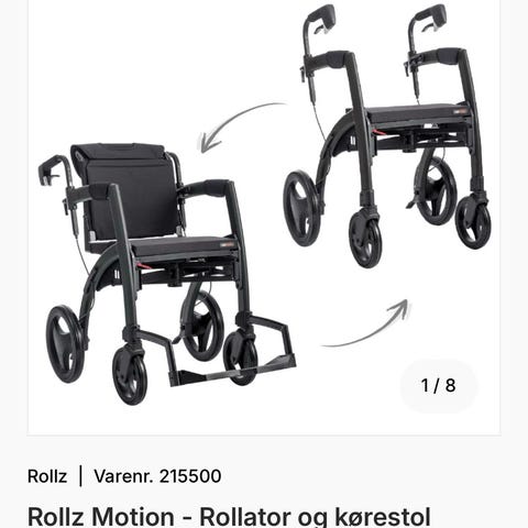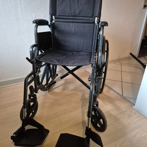 Rullestol med sort polstring og metalramme