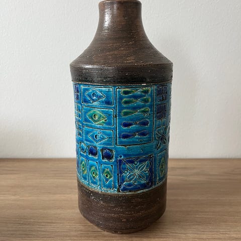 Due to downsizing, I am selling this beautiful Bitossi / Aldo Londi piece from my collection. The decor name is 'Sahara' and the bowl / tray measures 25cm across. It is in good vintage condition, with few imperfections. Priced affordably so anyone can own a beautiful piece of Bitossi 😊 Available to collect from central Copenhagen – shipping is not an option!
