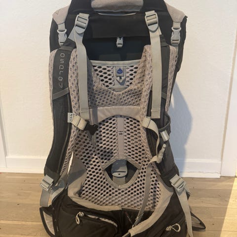 Osprey Poco bærestol fremstillet i stofmateriale, designet til unisex brug. Bærestolen har justerbare stropper og polstret rygstøtte for komfort. Den er egnet til at bære børn sikkert under udendørs aktiviteter.