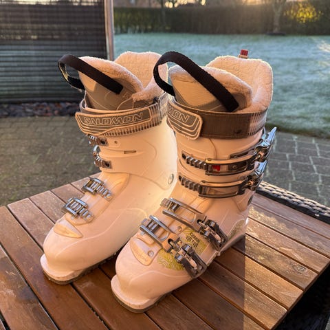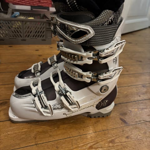 Sælger disse Salomon Divine dame skistøvler i rigtig god stand. De er kun brugt begrænset og fremstår derfor pæne med få brugsspor. En stabil og komfortabel støvle, der yder god støtte på pisten.