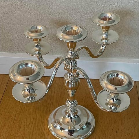 Sølvplet femarmet lysestage gammel