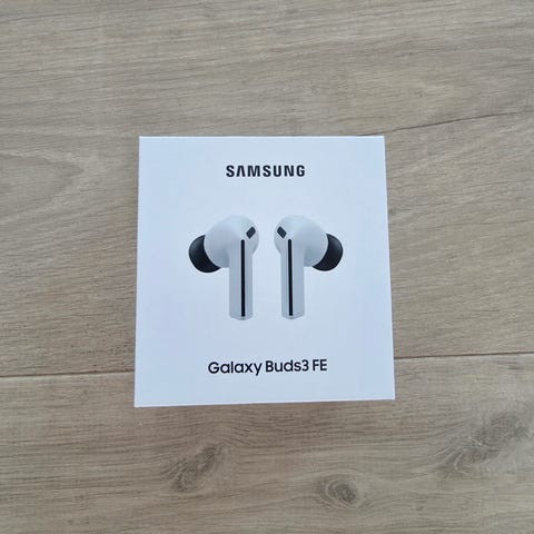 Samsung Galaxy Buds3 FE trådløse høretelefoner. Produktet leveres i original emballage. Specifikationer og yderligere funktioner kan findes på emballagen.