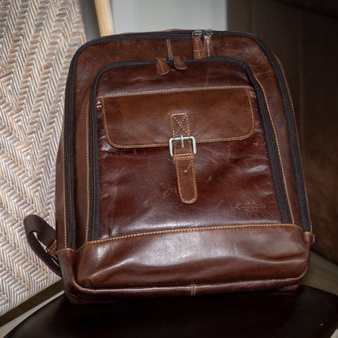 En læder rygsæk i meget god kvalitet, som jeg fik i julegave. Den har ikke været brugt, og er stadig delvist pakket i plastik (stropperne) som ses på billedet.