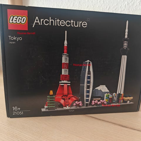 LEGO Architecture Tokyo byggesæt med kasse. indeholder dele til at bygge en model af Tokyo skyline. Sættet er en del af LEGO Architecture serien og inkluderer forskellige farvede klodser til at repræsentere byens karakteristiske bygninger.