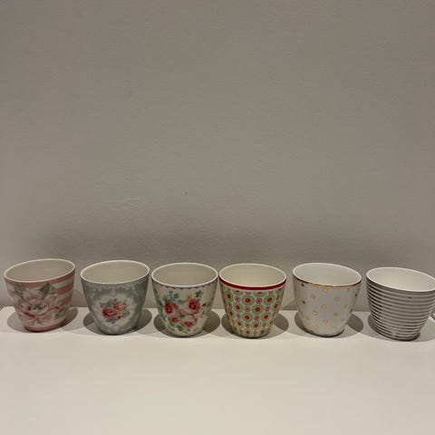 Højde 6,5 cm, diameter 7 cm. 125 ml. Sælges samlet