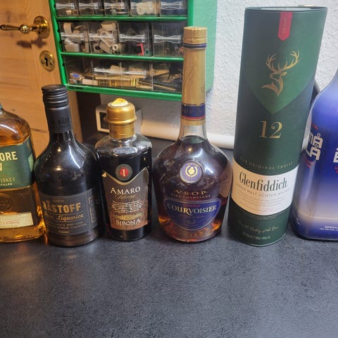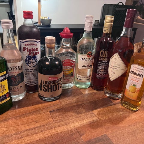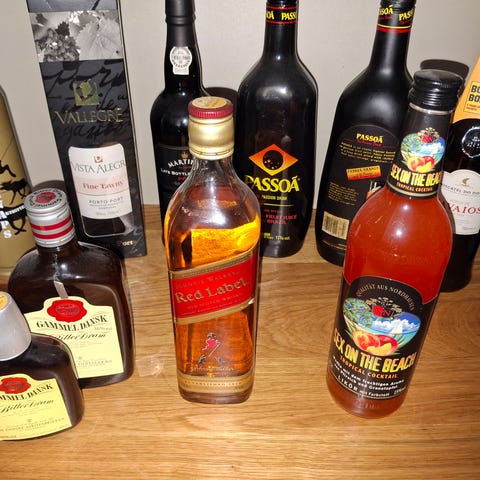 9 Flasker spiritus sælges samlet
