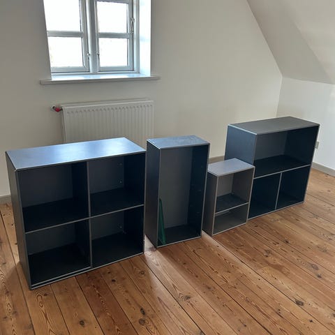 2 stk med vægophæng. Skufferne er i en varm lyserød/rosa/pink. Sælges samlet 800 kr.