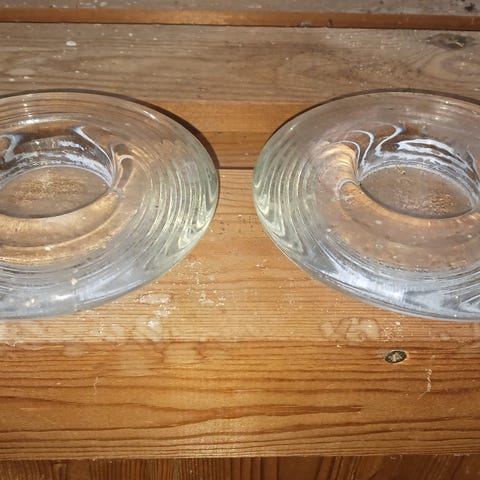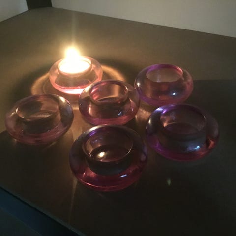 8 små fyrfads stager af klar glas.