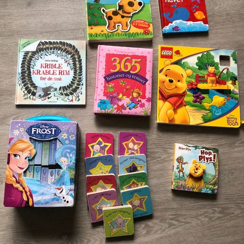 Blandet, Blandet, Forskellige bøger med prinsesser, tællebog, bog med puslespil brikker. I rigtig god stand. Fra røg og dyrefrit hjem.