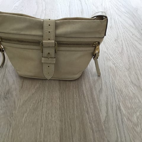 Mulberry taske til kvinde. Tasken har et mørkt design med et rundt logo i metal på forsiden. Velegnet til dagligt brug og opbevaring af personlige ejendele. Meget slidt, mangler også skulderrem, men kan stadig bruges og er et designprodukt