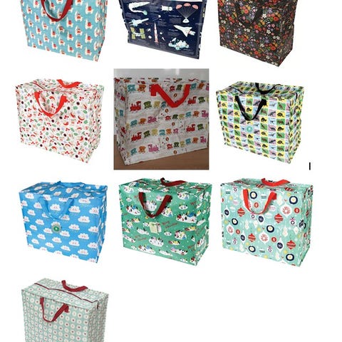 Helt nye opbevaringstasker udført i 90 % genbrugsmateriale (plast) med lynlås. Super gode til at opbevare sengetøj, legetøj, garn, stof, vasketøj. Eller bruges til rejsebrug.