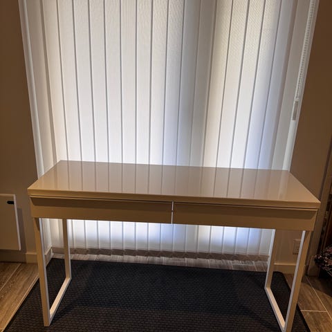 Skrivebord fra ikea - fin stand, men skuffen er lidt i stykker, den virker dog fint. Brugsspor på skrivebordet - mest i skuffen.