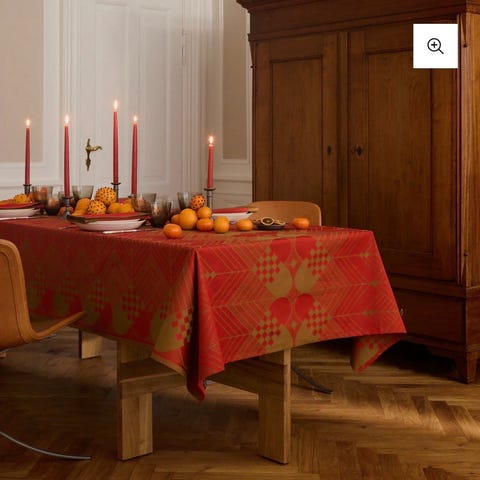 Georg Jensen Christmas Octagon juledug med dimensioner på 130x130 cm i dyb rød farve. Dugen har en oktagonal form og er designet til brug i julen.