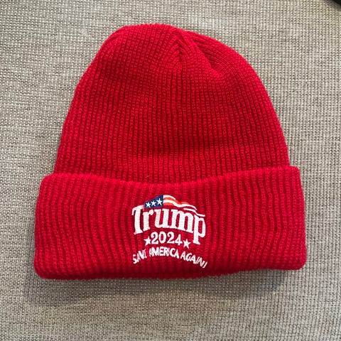 Designet inkluderer teksten 'Make America Great Again', 'Trump' og '45-47' broderet på forskellige steder.