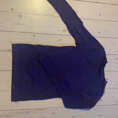Sættet består af en blå fleece trøje, sort skiundertøj og et par stribede sokker. Materialet er egnet til sport og udendørs aktiviteter. Dyre- og røgfrit hjem. Samlet pris 75 kr.