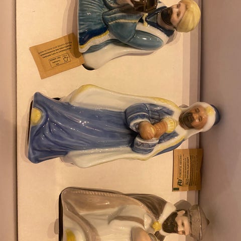 Smukt og utroligt stemningsfuldt Royal Copenhagen-sæt med De tre vise mænd, bestående af tre forskellige porcelænsfigurer. Figurenes design viser de tre vise mænd med de ikoniske gaver.