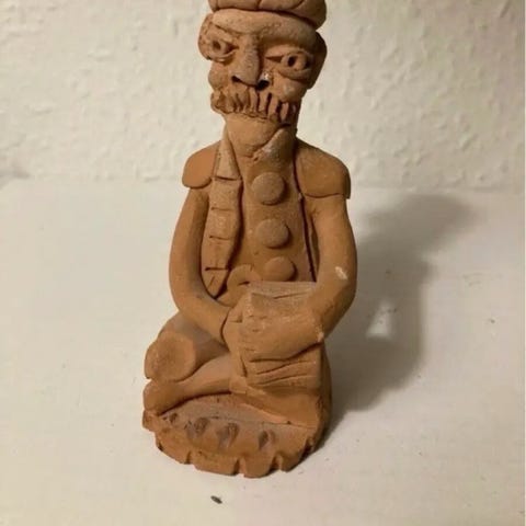 Rød skulptur i plast, yderst fin stand, 22 cm høj se foto Figur SKULPTUR OG FODBOLD