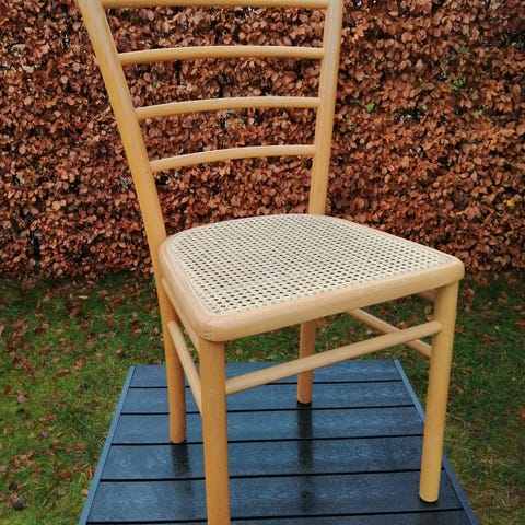 6 smukke, autentiske rattan stole. Købt i Frankrig og i virkelig flot stand. De har kun få, små brugsspor, som giver charme og patina uden at tage fra kvaliteten.