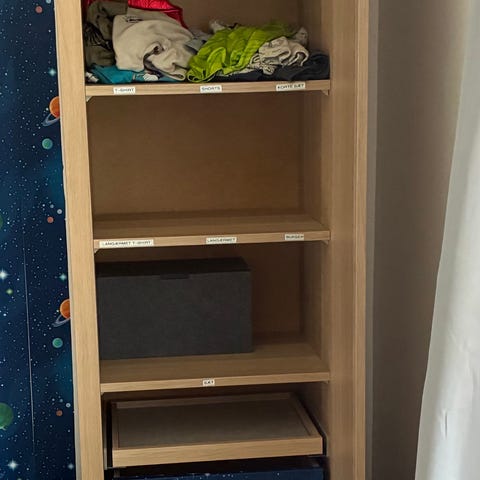 Bemærk. Sælger 2 skabe med 2 døre og 16 hylder i alt. Der er 2 Små huller øverst i højre hjørne, da skabene engang har været sat sammen.