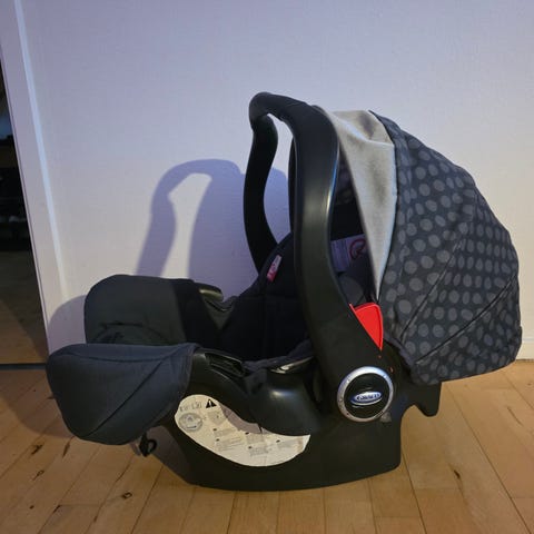 Graco autostol + isofix Akta til baby, designet til børn op til 13 kg. Autostolen er sort og grå og har en ergonomisk form til sikker transport af spædbørn. Materialerne er slidstærke og polstrede for komfort.