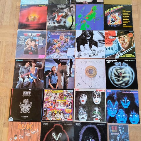 Samling af vinylplader bestående af forskellige rock og metal albums. Iron Maiden, Megadeth, Jeff Healey, Scorpions, Rainbow og flere.