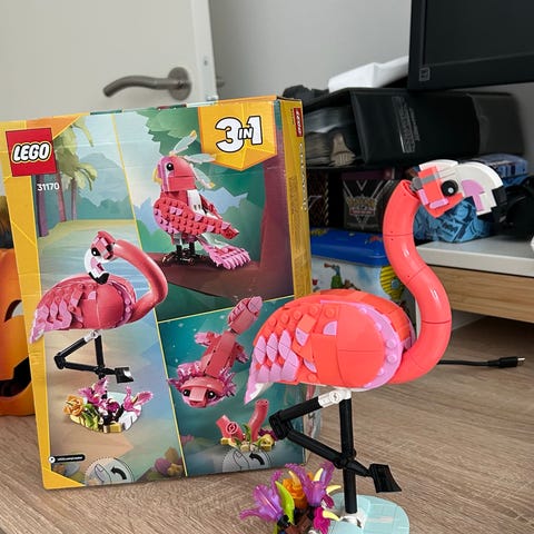 LEGO Creator Påfugl byggesæt med farverige klodser, der kan bygges som en påfugl eller ombygges til to andre modeller. Sættet indeholder detaljerede elementer til at skabe en levende og dekorativ påfugl med udfoldelige halefjer.