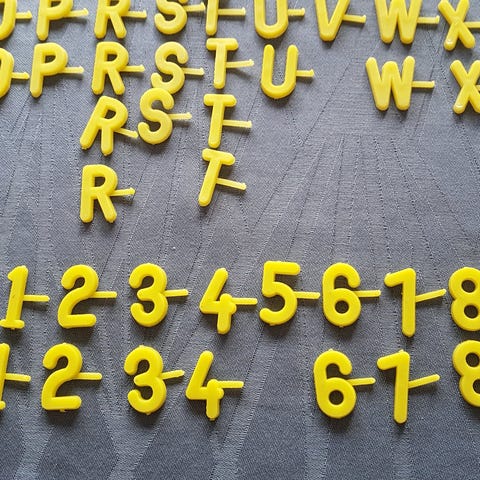 Spillet lavet at små træklodser med bogstaver_at_tal som sættes i trærammen.