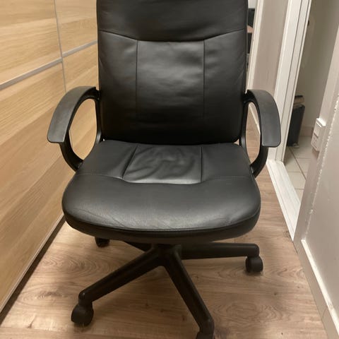 Hvid kontorstol med god bredde. Kan justeres i højden og dreje hele vejen rundt. I god stand da den kun er brugt under en enkelt eksamensperiode.