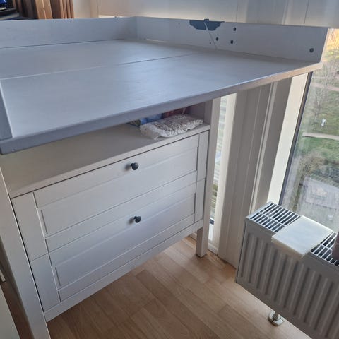 Har en ridse i den ene skuffe og ellers kun lidt patina på malingen - se billeder.