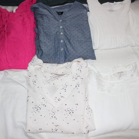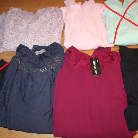 4 T-shirts, 1 nederdel/kjole str. L/XL