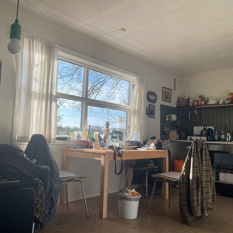 dejligt køkken med plads til spisebord og med nyt køleskab og nyere komfur