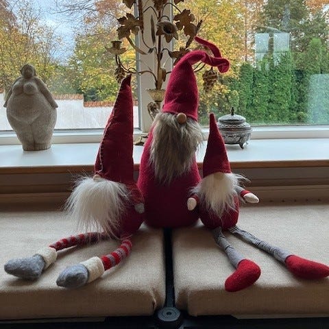 Nissepige og nissedreng på hver 50 cm. Sælges samlet for i alt kr. 150,-. Sælges billigt da vores hundehvalp har spist lidt af nissepigens træsko, som også ses på billedet.