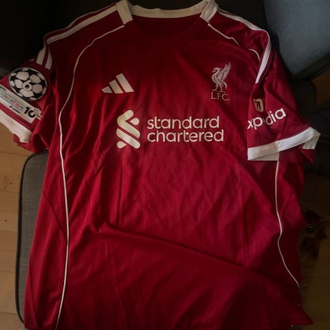 Adidas Liverpool fodboldtrøje i størrelse M. Trøjen er rød med hvide detaljer og har tryk med nummer 7 og navnet Wirtz på ryggen. Med guld EPL logo og alle detaljer. Min søn havde fået den som julegave, men havde i forvejen fået den anden.