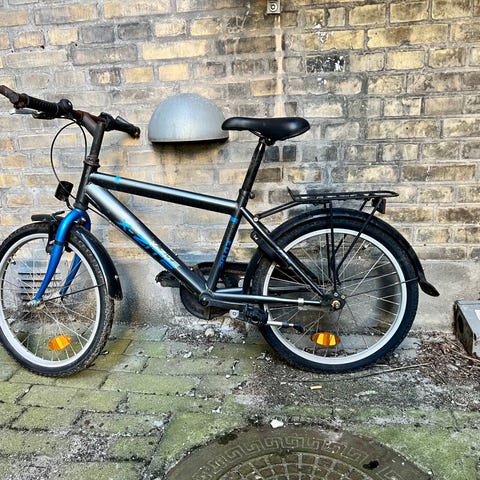 Cyklen har 24 tommer hjul og er udstyret med skærme foran og bagpå.